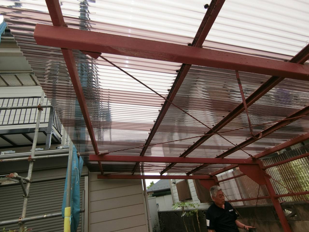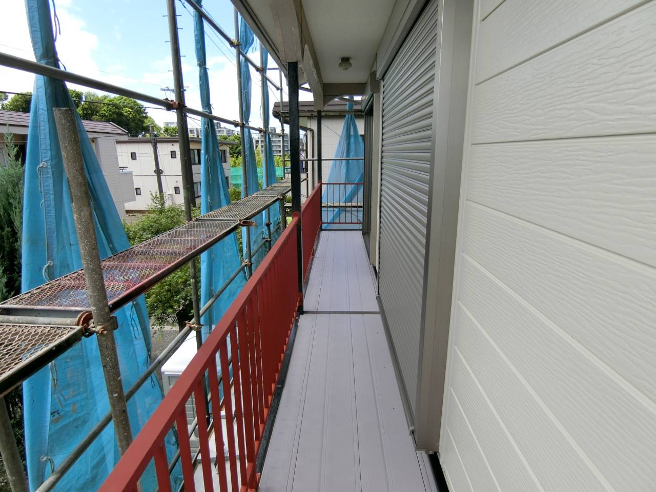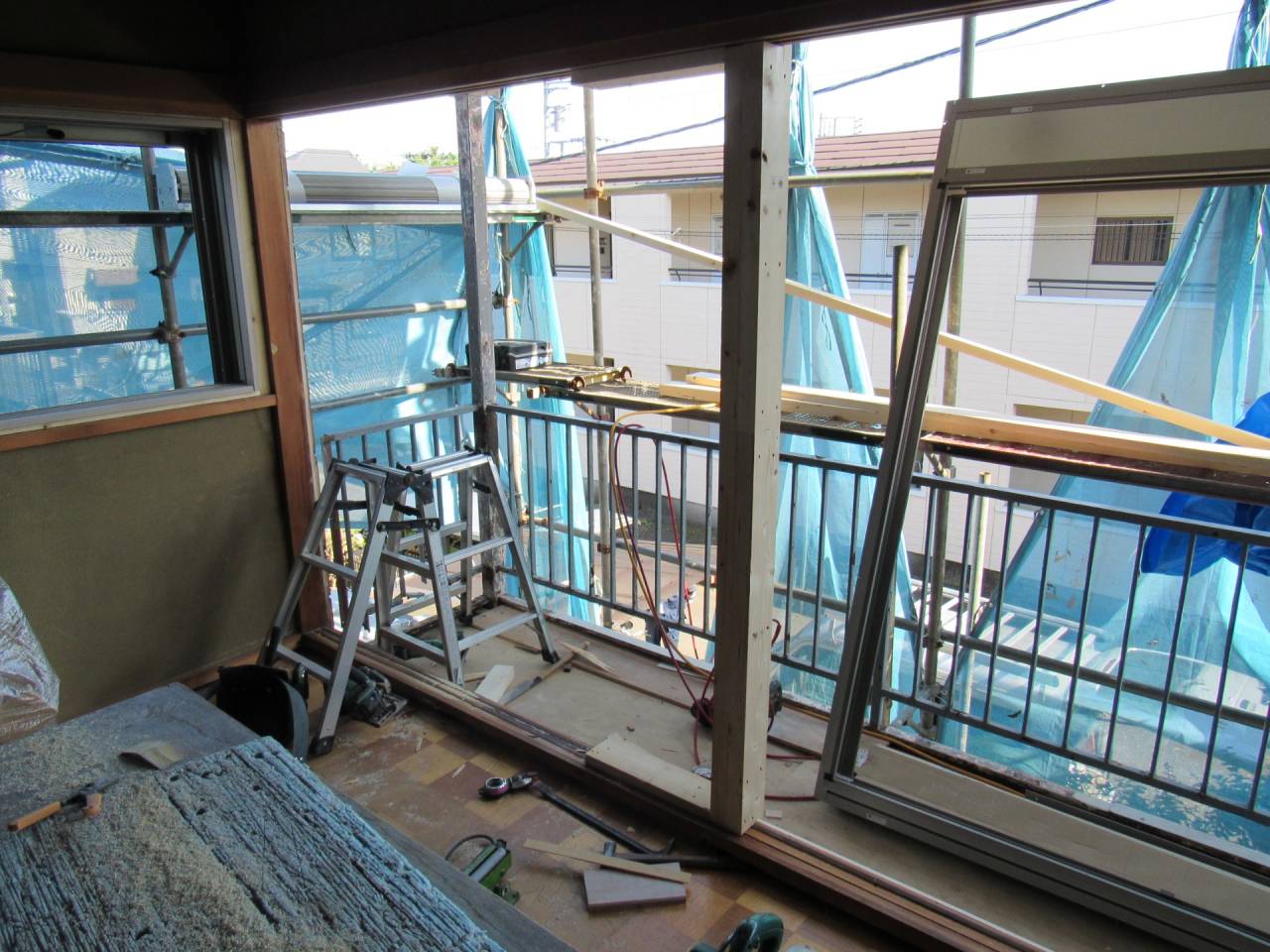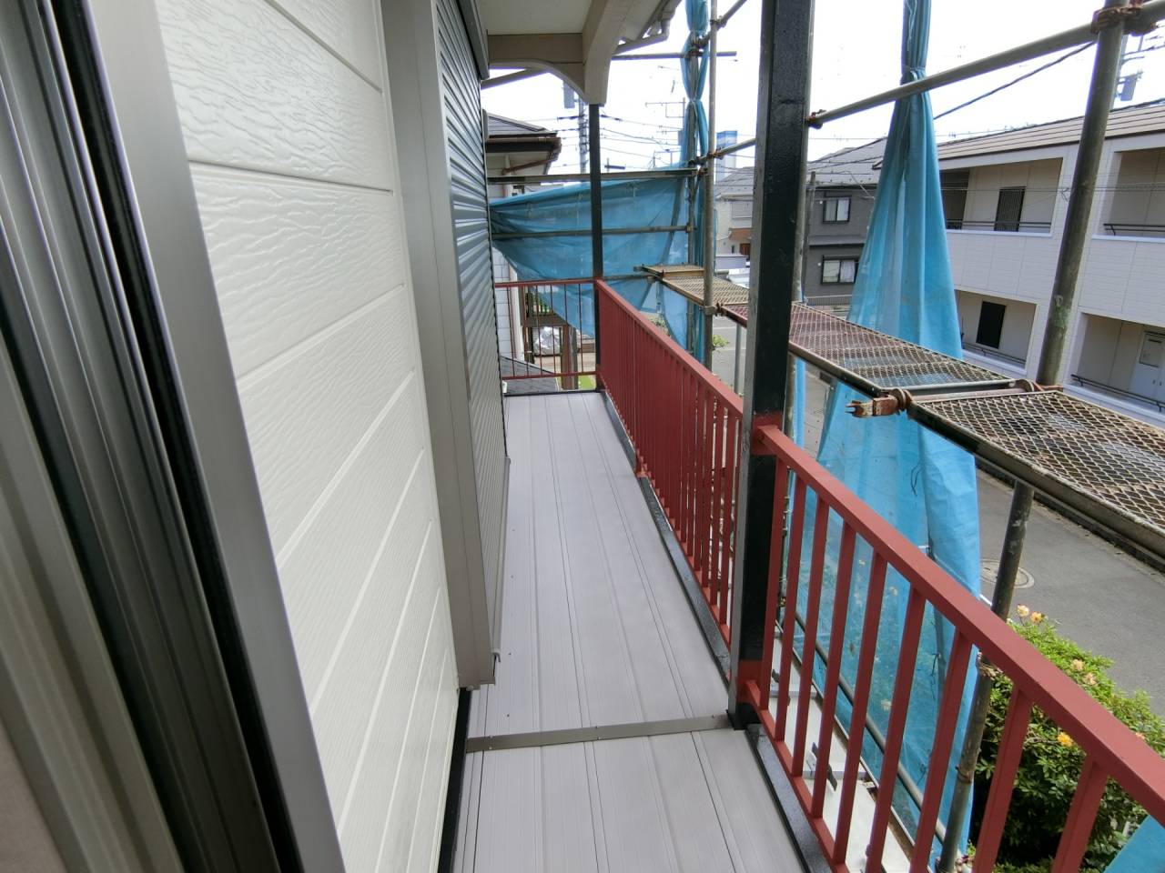 Y様邸リフォーム工事 2024/06/15 工事が完了しました。 ガレージの波板も交換してもらいました。 1ヶ月の工期でした ベランダも綺麗になりました。 本日、あしばの組み立て作業が始まりました。 近隣にご迷惑をお掛けしないようにシートも掛けられました。 駐車場の屋根も外れそうだったので新しく張り替えました。 今回の工事は2階和室の東側窓、同じく南側窓、 2階洋室の南側窓、 2階洋室の西側窓の合計4っつの窓の交換工事を行います。 窓を断熱仕様に変更すると補助金が出るそうです。 ついでにと言う訳ではありませんが、1階の屋根と鉄製のベランダの補修工事、和室の畳替えもやってもらうことにしました。 50年近くたってのリフォームです。 工期は約3週間とのことです。 2間の大きな窓もエコと安全を考えて1間の窓に変えて頂きます。 どの様になるかとても楽しみです。 鉄骨のベランダは錆でボロボロです。 しかも、軒を支える構造体です。 錆を落として補強することになりました。 壁も取り壊されてしまいました。 サッシが入って壁の下地も出来ました。 洋室の西側の窓にもサッシが入りました。 洋室のフロアーもフローリング材を上張りしてもらいました。 家具は和室に集められました。 洋室がほぼ終わり、和室に取り掛かる準備ができました。家具の移動も大工さんがしてくれたようです。 洋室の入り口のドアーも交換して頂きました。 階段には手摺も付けて頂きました。 和室の4枚引き違い戸は1間の引き違い戸に交換です。左半分は壁にしていただきます。 家具は洋室に引っ越しました。 床の間の下がり壁は取っ払いました。 砂壁の上を板壁にしました。 窓が入り、壁も出来上がりました。 クロス張りの準備ができました。 床の間の下がり壁を取ったところにタンスを収めました。 クロスも綺麗に貼れました。 和室の天井、壁にクロスが貼られました。 屋根の下屋部分は被せ工法で補修することになりました。 防水シートを貼り終えました。 窓の交換工事に伴いサイディング工事も行っています。 ベランダの手摺は新規のものに交換しました。 足元の板も張り替えて安心してベランダに出られます。 屋根も葺き終わりました。 これで雨漏りの心配がなくなりました。 新しい畳も入りました。 とても良いにおいがします。 洋室に家具を移動しました。 手摺部分は新しいものに交換しました。 黒に塗装しました。 補修と塗装が終わりました。 鉄骨が屋根を支えているので、これで地震が来ても安心です。 足場のあるうちに破風板も塗りました。 破風板等は5年を目途に塗り替えするのが良いようです。 下地がボロボロになると交換しなければならなくなってしまうようです。 リフォーム・リノベーション