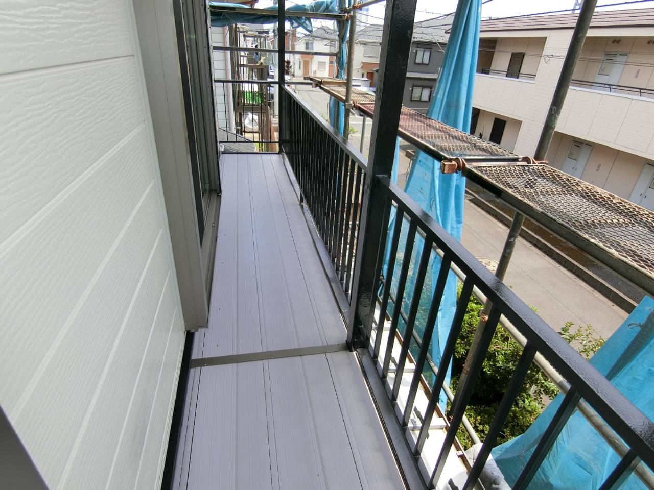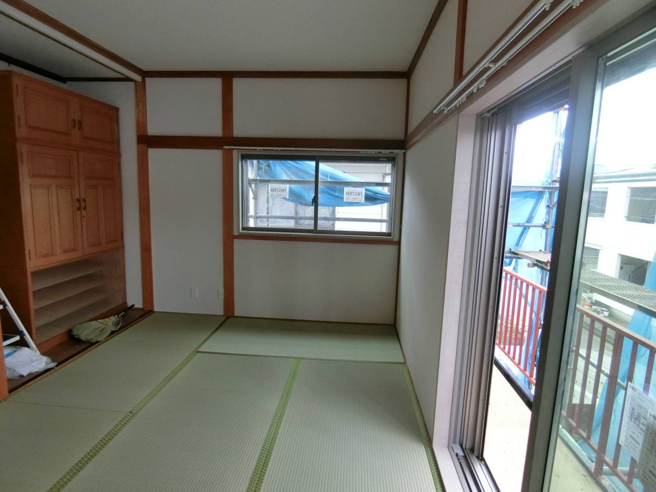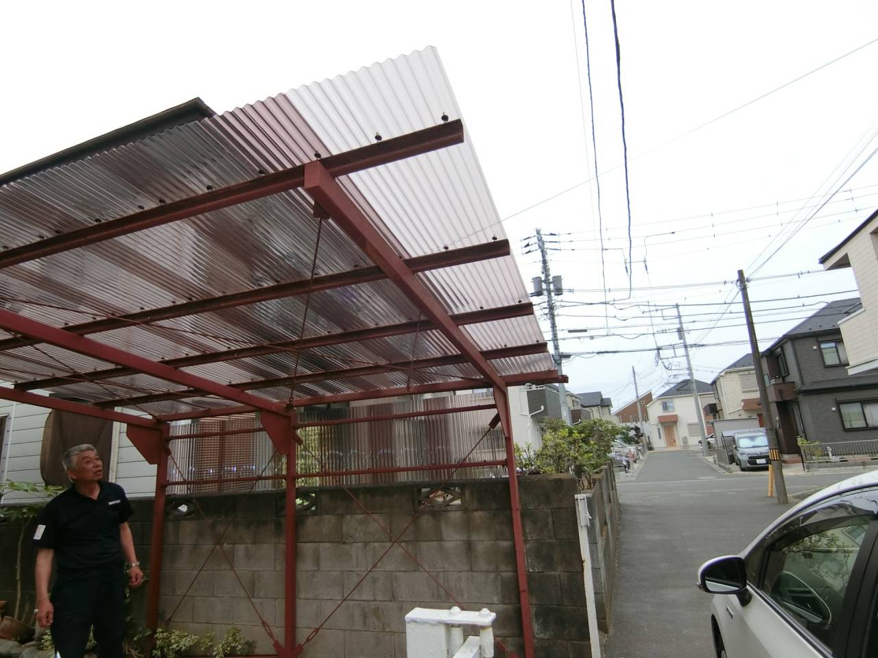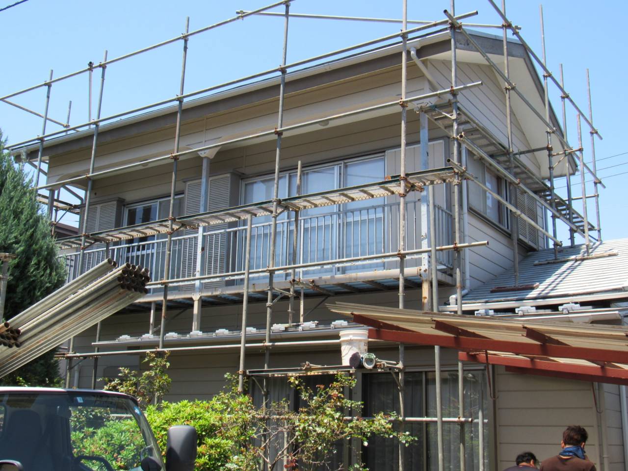 Y様邸リフォーム工事 2024/06/15 工事が完了しました。 ガレージの波板も交換してもらいました。 1ヶ月の工期でした ベランダも綺麗になりました。 本日、あしばの組み立て作業が始まりました。 近隣にご迷惑をお掛けしないようにシートも掛けられました。 駐車場の屋根も外れそうだったので新しく張り替えました。 今回の工事は2階和室の東側窓、同じく南側窓、 2階洋室の南側窓、 2階洋室の西側窓の合計4っつの窓の交換工事を行います。 窓を断熱仕様に変更すると補助金が出るそうです。 ついでにと言う訳ではありませんが、1階の屋根と鉄製のベランダの補修工事、和室の畳替えもやってもらうことにしました。 50年近くたってのリフォームです。 工期は約3週間とのことです。 2間の大きな窓もエコと安全を考えて1間の窓に変えて頂きます。 どの様になるかとても楽しみです。 鉄骨のベランダは錆でボロボロです。 しかも、軒を支える構造体です。 錆を落として補強することになりました。 壁も取り壊されてしまいました。 サッシが入って壁の下地も出来ました。 洋室の西側の窓にもサッシが入りました。 洋室のフロアーもフローリング材を上張りしてもらいました。 家具は和室に集められました。 洋室がほぼ終わり、和室に取り掛かる準備ができました。家具の移動も大工さんがしてくれたようです。 洋室の入り口のドアーも交換して頂きました。 階段には手摺も付けて頂きました。 和室の4枚引き違い戸は1間の引き違い戸に交換です。左半分は壁にしていただきます。 家具は洋室に引っ越しました。 床の間の下がり壁は取っ払いました。 砂壁の上を板壁にしました。 窓が入り、壁も出来上がりました。 クロス張りの準備ができました。 床の間の下がり壁を取ったところにタンスを収めました。 クロスも綺麗に貼れました。 和室の天井、壁にクロスが貼られました。 屋根の下屋部分は被せ工法で補修することになりました。 防水シートを貼り終えました。 窓の交換工事に伴いサイディング工事も行っています。 ベランダの手摺は新規のものに交換しました。 足元の板も張り替えて安心してベランダに出られます。 屋根も葺き終わりました。 これで雨漏りの心配がなくなりました。 新しい畳も入りました。 とても良いにおいがします。 洋室に家具を移動しました。 手摺部分は新しいものに交換しました。 黒に塗装しました。 補修と塗装が終わりました。 鉄骨が屋根を支えているので、これで地震が来ても安心です。 足場のあるうちに破風板も塗りました。 破風板等は5年を目途に塗り替えするのが良いようです。 下地がボロボロになると交換しなければならなくなってしまうようです。 リフォーム・リノベーション