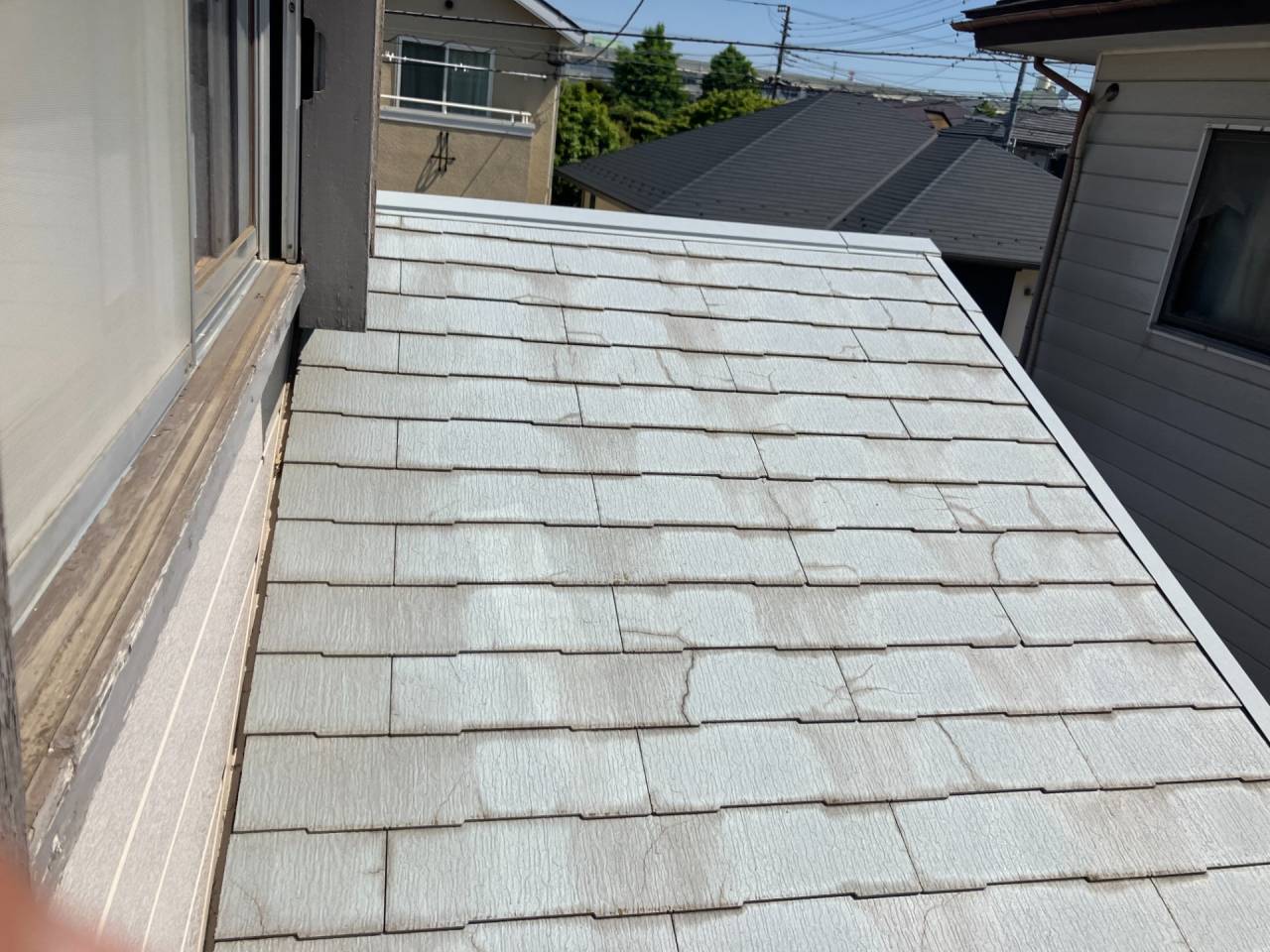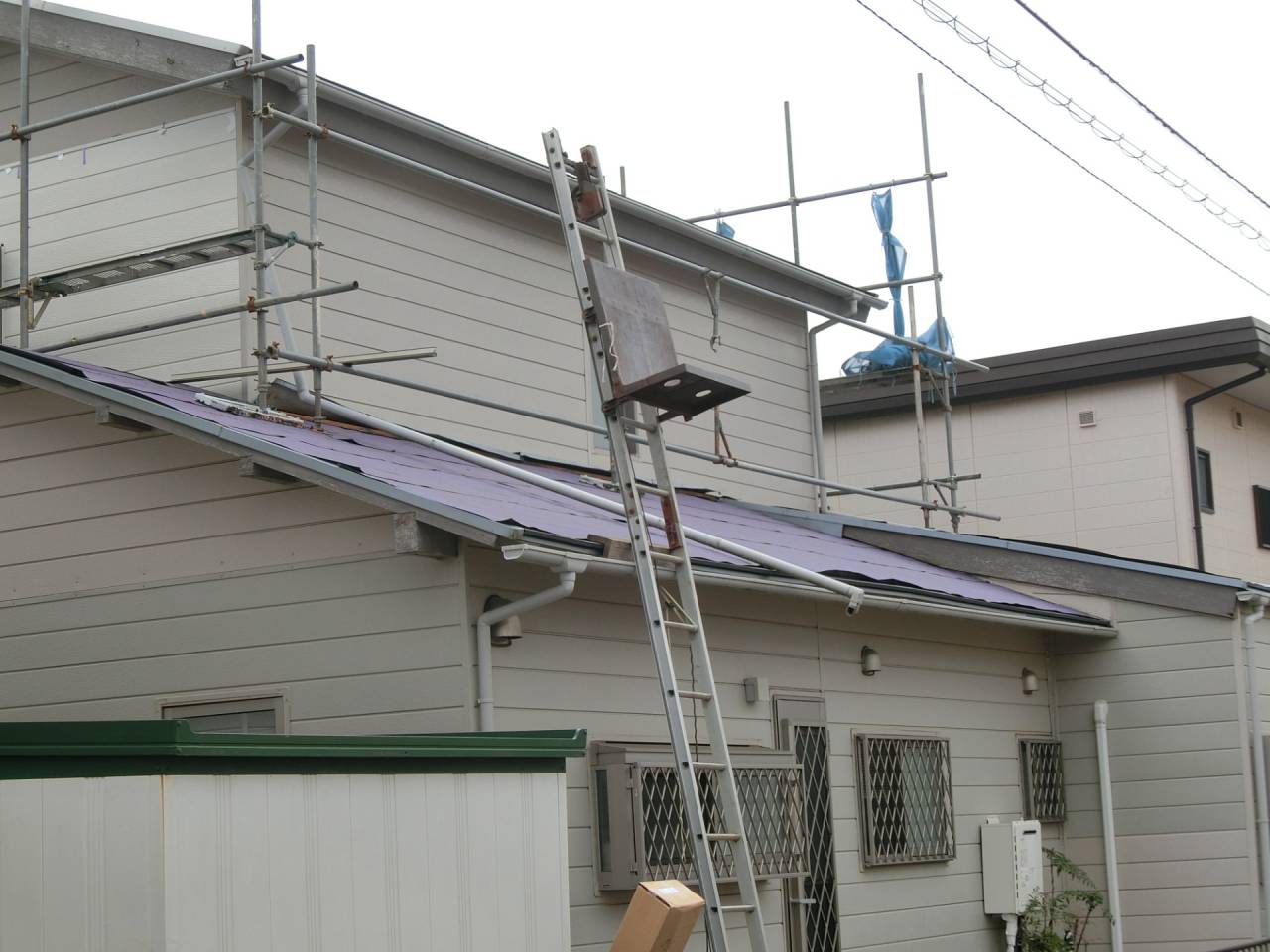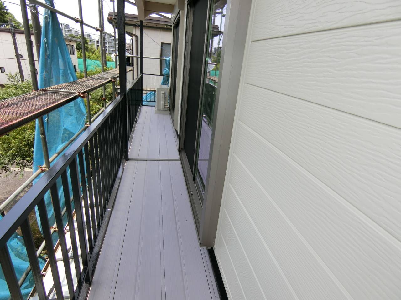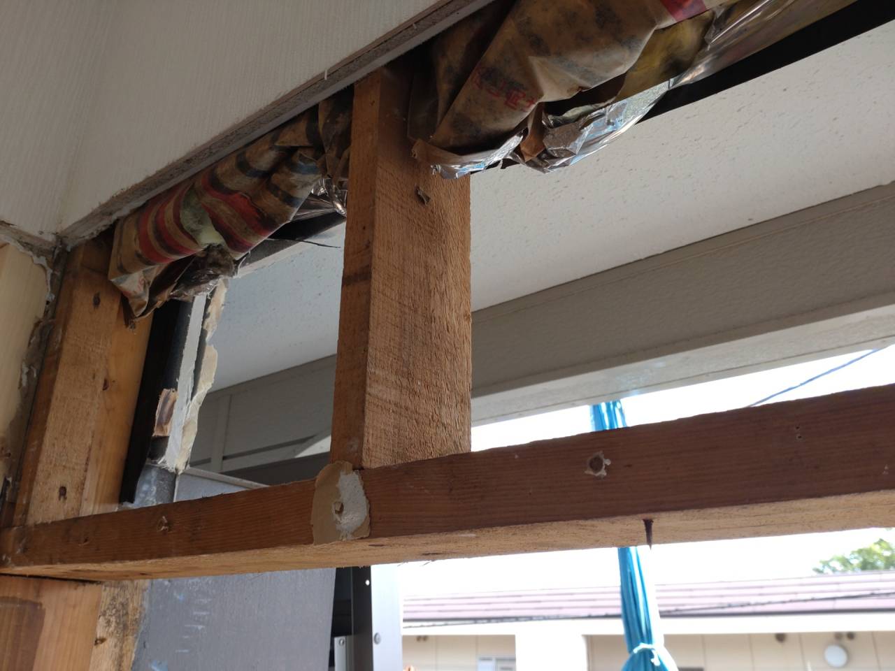 Y様邸リフォーム工事 2024/06/15 工事が完了しました。 ガレージの波板も交換してもらいました。 1ヶ月の工期でした ベランダも綺麗になりました。 本日、あしばの組み立て作業が始まりました。 近隣にご迷惑をお掛けしないようにシートも掛けられました。 駐車場の屋根も外れそうだったので新しく張り替えました。 今回の工事は2階和室の東側窓、同じく南側窓、 2階洋室の南側窓、 2階洋室の西側窓の合計4っつの窓の交換工事を行います。 窓を断熱仕様に変更すると補助金が出るそうです。 ついでにと言う訳ではありませんが、1階の屋根と鉄製のベランダの補修工事、和室の畳替えもやってもらうことにしました。 50年近くたってのリフォームです。 工期は約3週間とのことです。 2間の大きな窓もエコと安全を考えて1間の窓に変えて頂きます。 どの様になるかとても楽しみです。 鉄骨のベランダは錆でボロボロです。 しかも、軒を支える構造体です。 錆を落として補強することになりました。 壁も取り壊されてしまいました。 サッシが入って壁の下地も出来ました。 洋室の西側の窓にもサッシが入りました。 洋室のフロアーもフローリング材を上張りしてもらいました。 家具は和室に集められました。 洋室がほぼ終わり、和室に取り掛かる準備ができました。家具の移動も大工さんがしてくれたようです。 洋室の入り口のドアーも交換して頂きました。 階段には手摺も付けて頂きました。 和室の4枚引き違い戸は1間の引き違い戸に交換です。左半分は壁にしていただきます。 家具は洋室に引っ越しました。 床の間の下がり壁は取っ払いました。 砂壁の上を板壁にしました。 窓が入り、壁も出来上がりました。 クロス張りの準備ができました。 床の間の下がり壁を取ったところにタンスを収めました。 クロスも綺麗に貼れました。 和室の天井、壁にクロスが貼られました。 屋根の下屋部分は被せ工法で補修することになりました。 防水シートを貼り終えました。 窓の交換工事に伴いサイディング工事も行っています。 ベランダの手摺は新規のものに交換しました。 足元の板も張り替えて安心してベランダに出られます。 屋根も葺き終わりました。 これで雨漏りの心配がなくなりました。 新しい畳も入りました。 とても良いにおいがします。 洋室に家具を移動しました。 手摺部分は新しいものに交換しました。 黒に塗装しました。 補修と塗装が終わりました。 鉄骨が屋根を支えているので、これで地震が来ても安心です。 足場のあるうちに破風板も塗りました。 破風板等は5年を目途に塗り替えするのが良いようです。 下地がボロボロになると交換しなければならなくなってしまうようです。 リフォーム・リノベーション