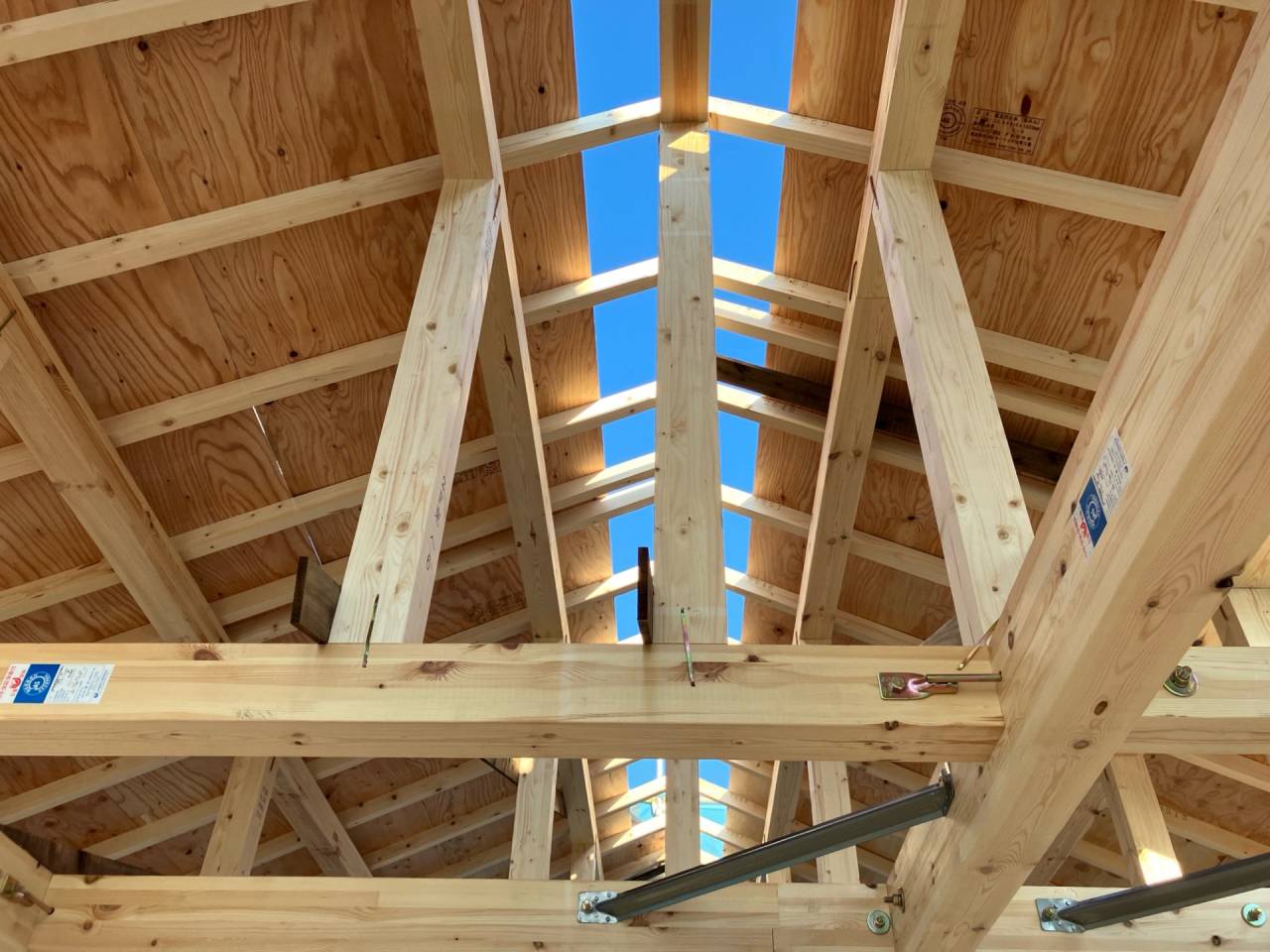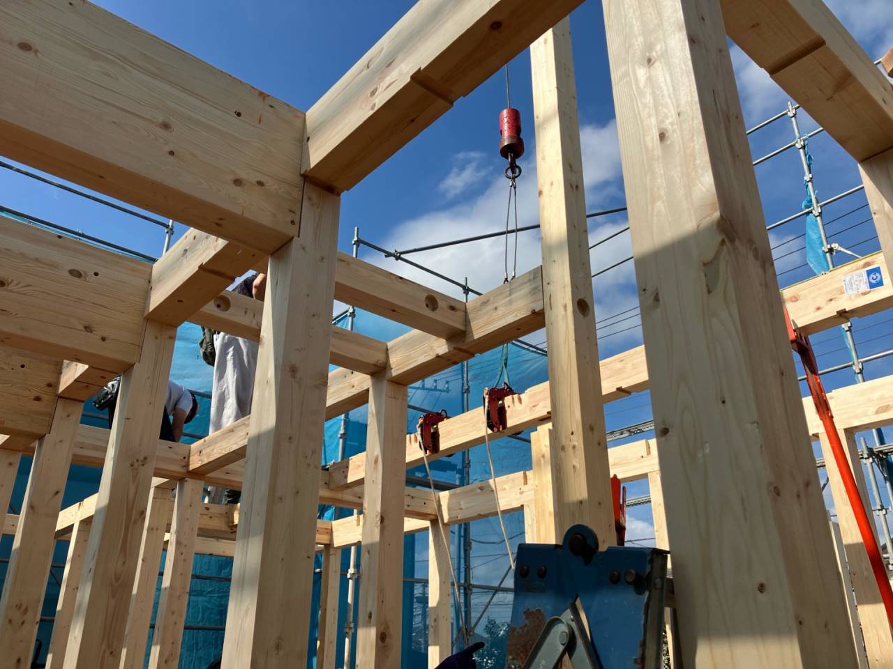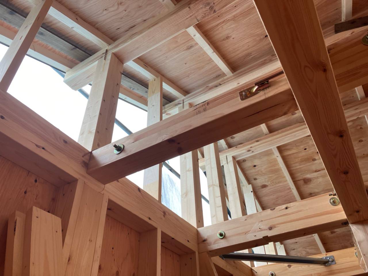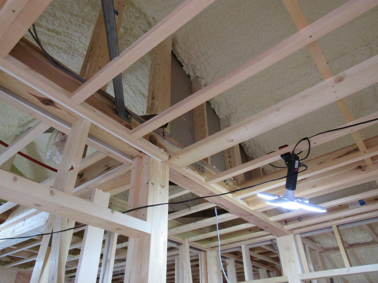 Y様N様邸新築工事 2024/12/13 内装工事も完了しました。 本日社内検査を実施しました。 内部をじっくりとご覧ください。 二世帯住宅のとても大きな家が完成しました。 2階へ移動します。 足場が外れました。 内装の下地処理がもうすぐ終わります。 外壁の防水シートが貼り終えました。 内装の下地ボードを貼る準備ができました。 外装材を貼る準備も完了です。 内壁に断熱材が吹き付けられました。 屋根裏にもきっちりと断熱工事がなされています。 構造ご覧いただきましょう。 ダクトの中をご覧いただくことは余り無いのでは? ベランダの防水処理も完璧です。 外壁合板が貼り終えました。 建具を入れるために、高窓や小窓の外壁の合板は切除されます。 建具が入るのを待っています。 屋根が葺き上がりました。 構造をご覧ください。 金具を使って十分な補強を行っています。 上棟しました。 大勢の大工さんが協力して立ち上げます。 今は重機が大活躍です。 狭いところで、芸術的な動きです。 子供でなくても、一日見ていて飽きません。 配筋工事も完了です。 地盤改良工事完了。 地鎮祭を執り行いました。 新築住宅