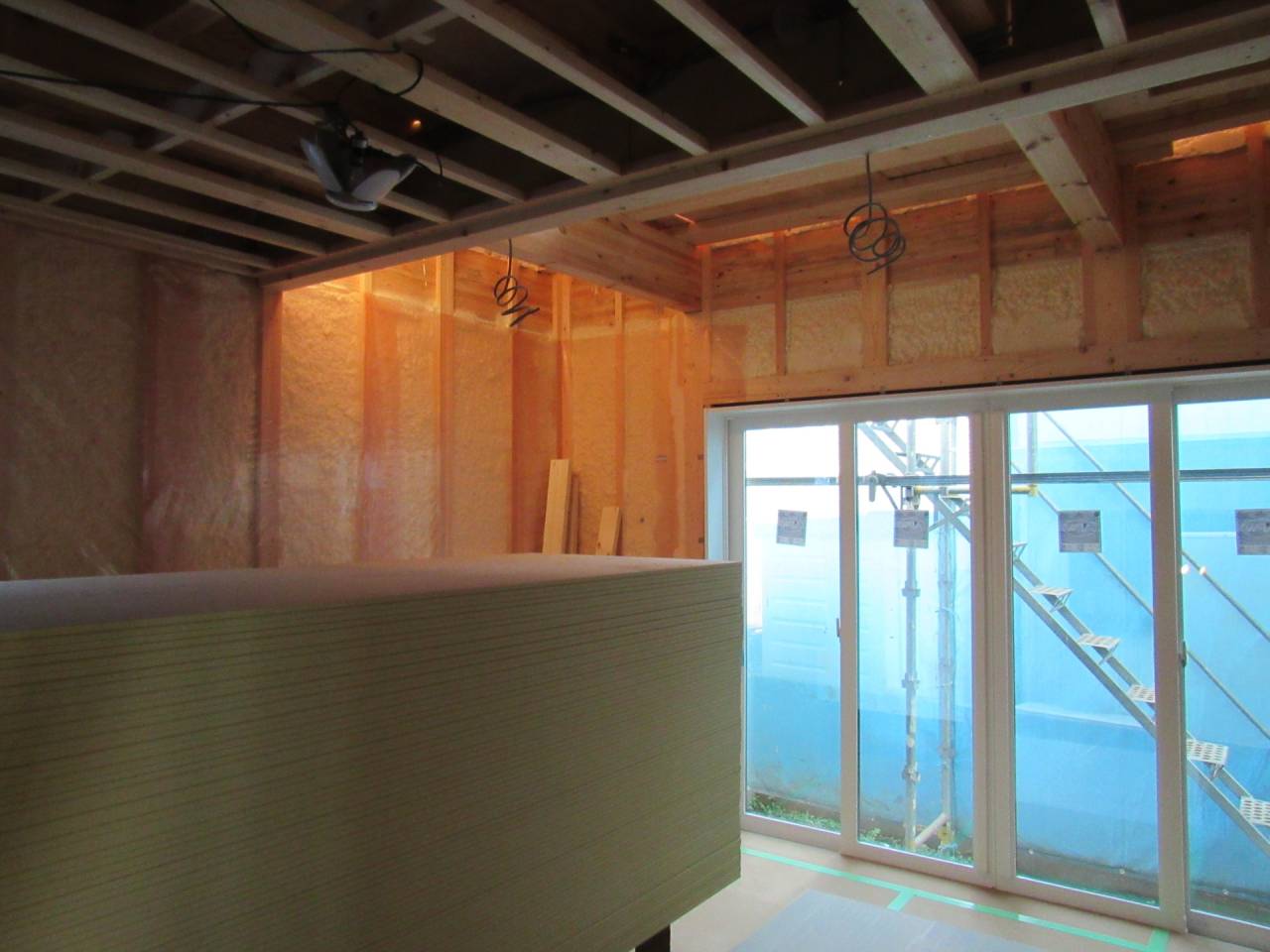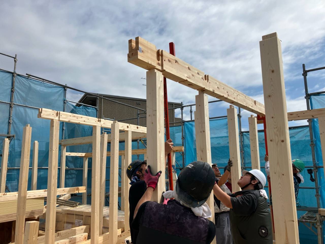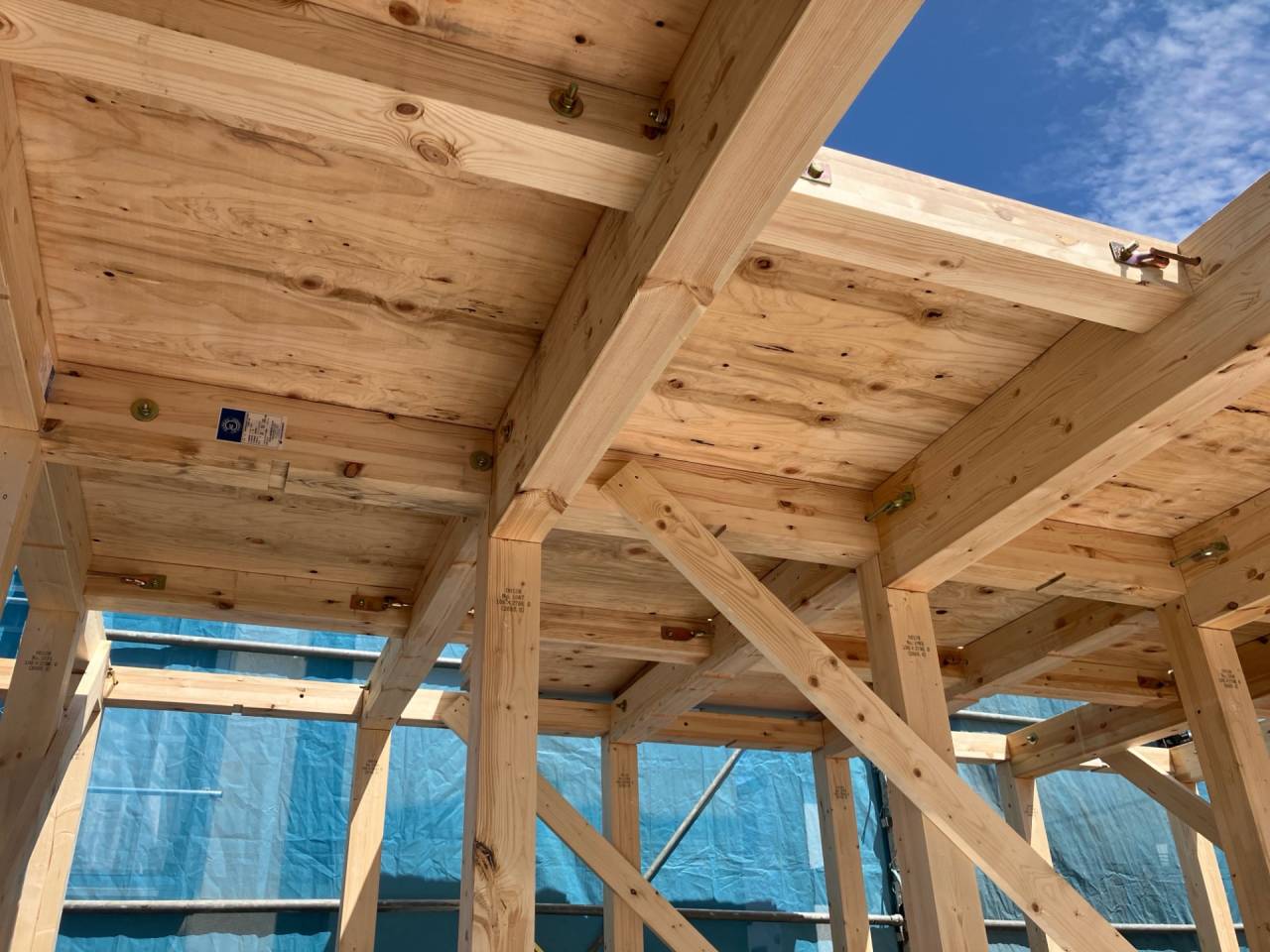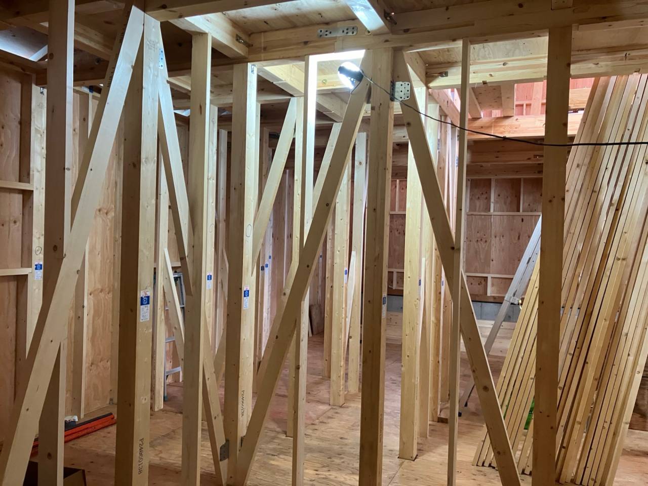 Y様N様邸新築工事 2024/12/13 内装工事も完了しました。 本日社内検査を実施しました。 内部をじっくりとご覧ください。 二世帯住宅のとても大きな家が完成しました。 2階へ移動します。 足場が外れました。 内装の下地処理がもうすぐ終わります。 外壁の防水シートが貼り終えました。 内装の下地ボードを貼る準備ができました。 外装材を貼る準備も完了です。 内壁に断熱材が吹き付けられました。 屋根裏にもきっちりと断熱工事がなされています。 構造ご覧いただきましょう。 ダクトの中をご覧いただくことは余り無いのでは? ベランダの防水処理も完璧です。 外壁合板が貼り終えました。 建具を入れるために、高窓や小窓の外壁の合板は切除されます。 建具が入るのを待っています。 屋根が葺き上がりました。 構造をご覧ください。 金具を使って十分な補強を行っています。 上棟しました。 大勢の大工さんが協力して立ち上げます。 今は重機が大活躍です。 狭いところで、芸術的な動きです。 子供でなくても、一日見ていて飽きません。 配筋工事も完了です。 地盤改良工事完了。 地鎮祭を執り行いました。 新築住宅