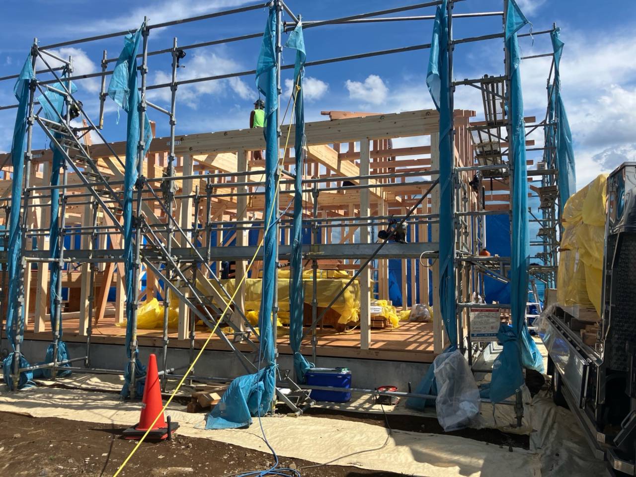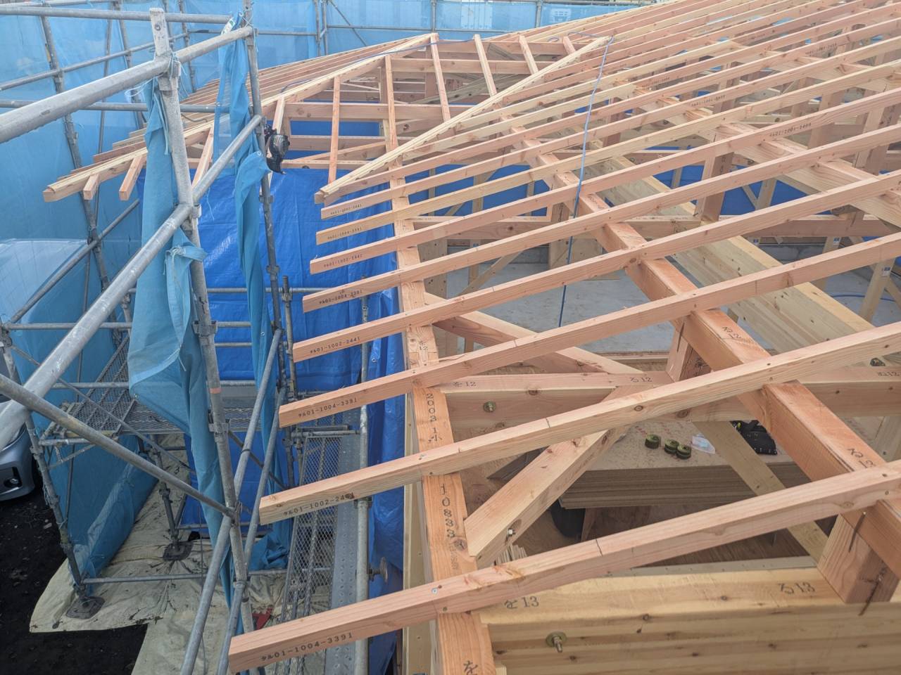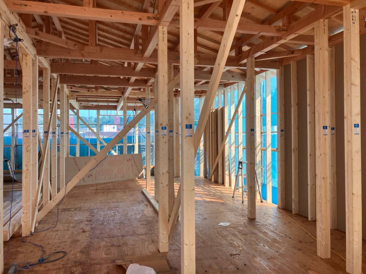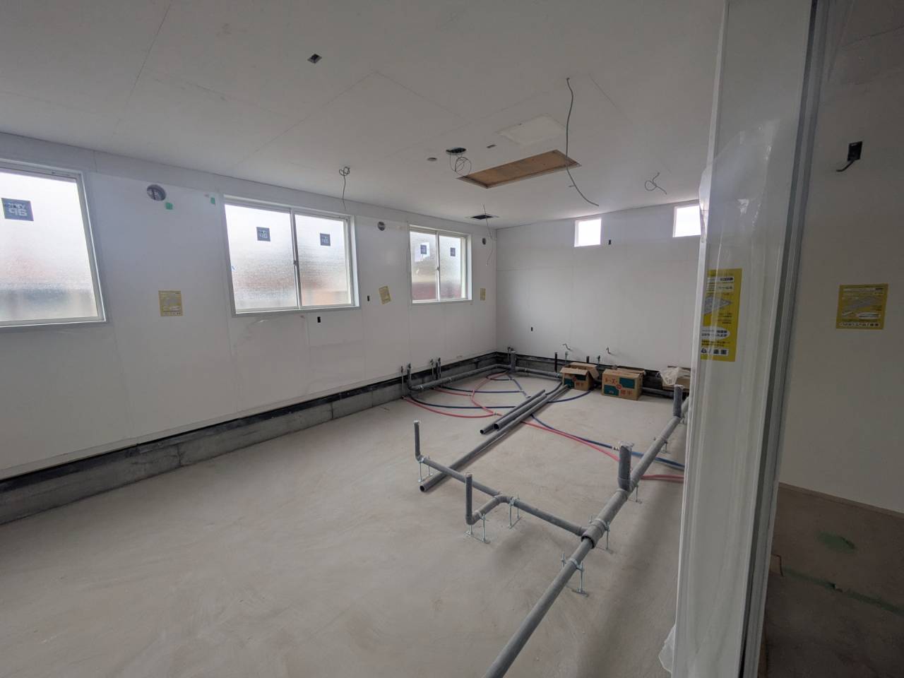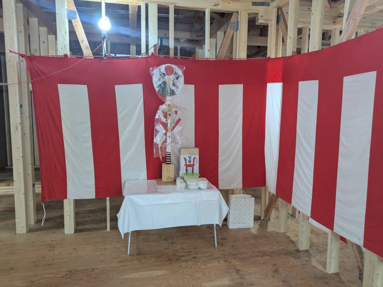 スマイルファクトリー新築工事 2026/01/30 竣工致しました。 外観をごらんいただきましょう。 内部もご覧ください。 お引渡しの式が執り行われました。 弊社からお施主様へお引渡しをさせて頂きました。 お施主様から運営法人様にお引渡して頂きました。 外構工事が終わればお引渡しです。 木工事が終わりました。 外壁工事もほぼ完了です。 外壁に防水シートを貼り終えました。 内部の断熱工事始まりました。 サッシが入り、外壁の下地が貼られました。 内部の構造をご覧ください。 屋根の垂木まで組み上がりました。 野地板が貼り終えました。 上棟式が行われました。 棟梁が先導して四方を清めました。 上棟しました。 内部の構造をご覧ください。 ルフィングシートが丁寧に貼られています。 野地板もしっかりと貼り終えました。 垂木がしっかりと貼られています。 上棟が始まりました。 床下の断熱と床の下地を貼って、いよいよ上棟です。 木工事が始まりました。 木工事が始まりました。 基礎工事が完了しました。 基礎工事が始まりました。 造成工事が始まりました。 境界のブロック工事が始まりました。 福祉施設・店舗建築