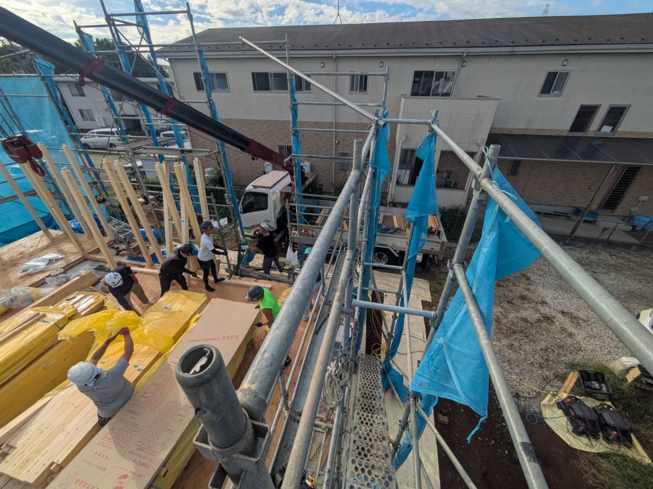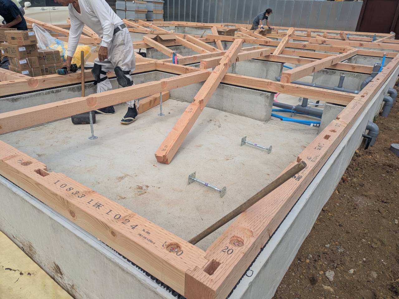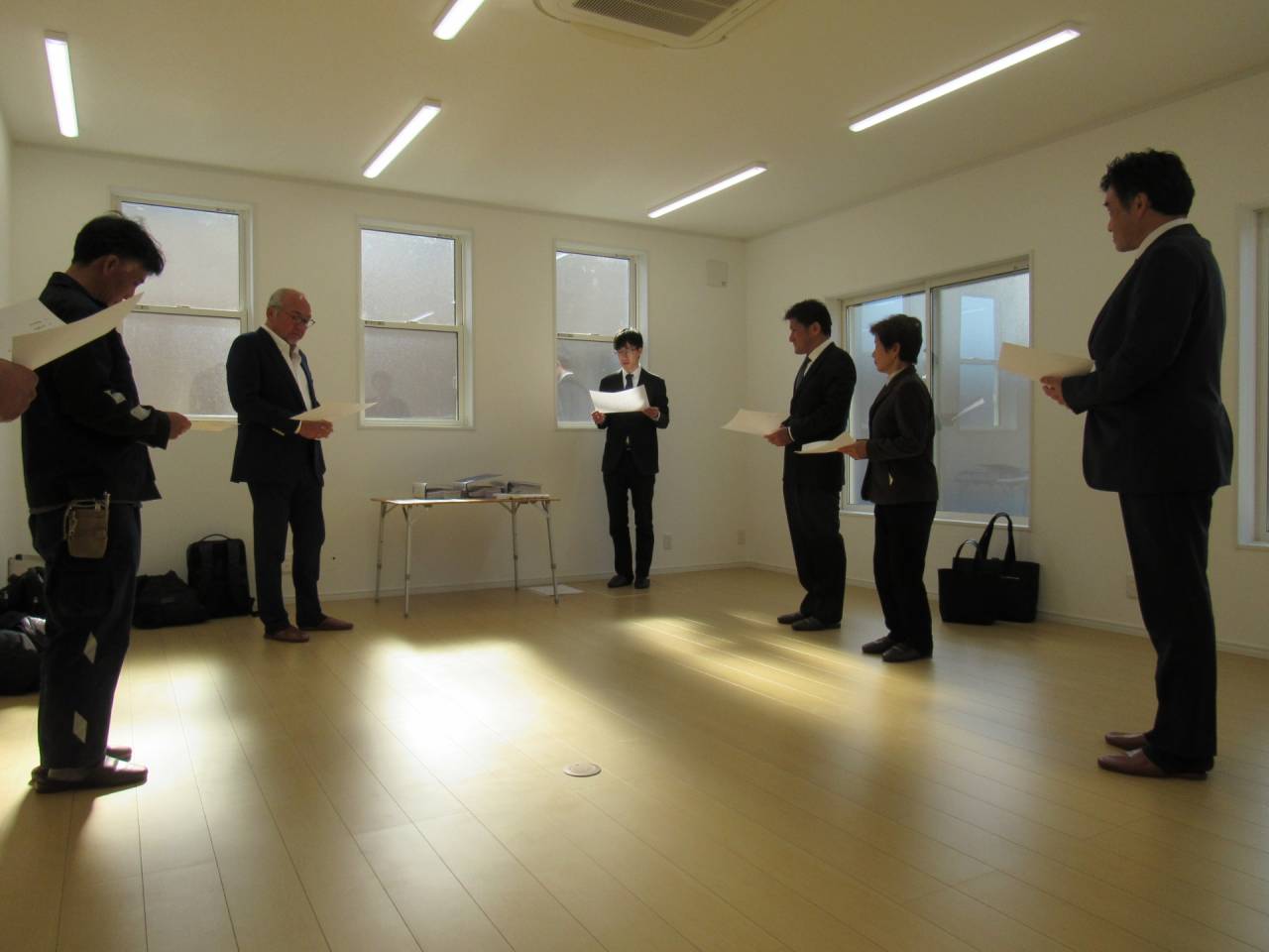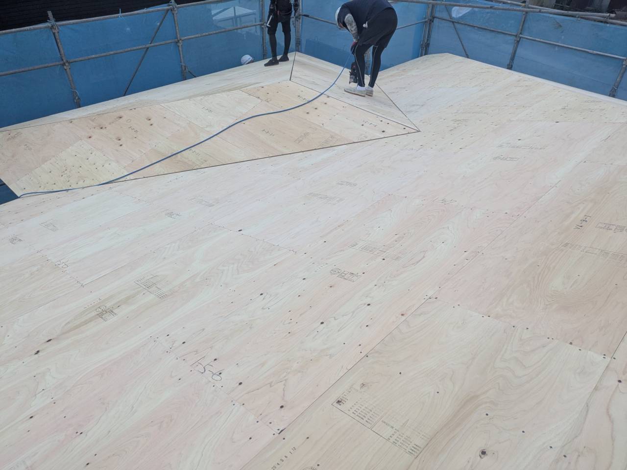 スマイルファクトリー新築工事 2026/01/30 竣工致しました。 外観をごらんいただきましょう。 内部もご覧ください。 お引渡しの式が執り行われました。 弊社からお施主様へお引渡しをさせて頂きました。 お施主様から運営法人様にお引渡して頂きました。 外構工事が終わればお引渡しです。 木工事が終わりました。 外壁工事もほぼ完了です。 外壁に防水シートを貼り終えました。 内部の断熱工事始まりました。 サッシが入り、外壁の下地が貼られました。 内部の構造をご覧ください。 屋根の垂木まで組み上がりました。 野地板が貼り終えました。 上棟式が行われました。 棟梁が先導して四方を清めました。 上棟しました。 内部の構造をご覧ください。 ルフィングシートが丁寧に貼られています。 野地板もしっかりと貼り終えました。 垂木がしっかりと貼られています。 上棟が始まりました。 床下の断熱と床の下地を貼って、いよいよ上棟です。 木工事が始まりました。 木工事が始まりました。 基礎工事が完了しました。 基礎工事が始まりました。 造成工事が始まりました。 境界のブロック工事が始まりました。 福祉施設・店舗建築