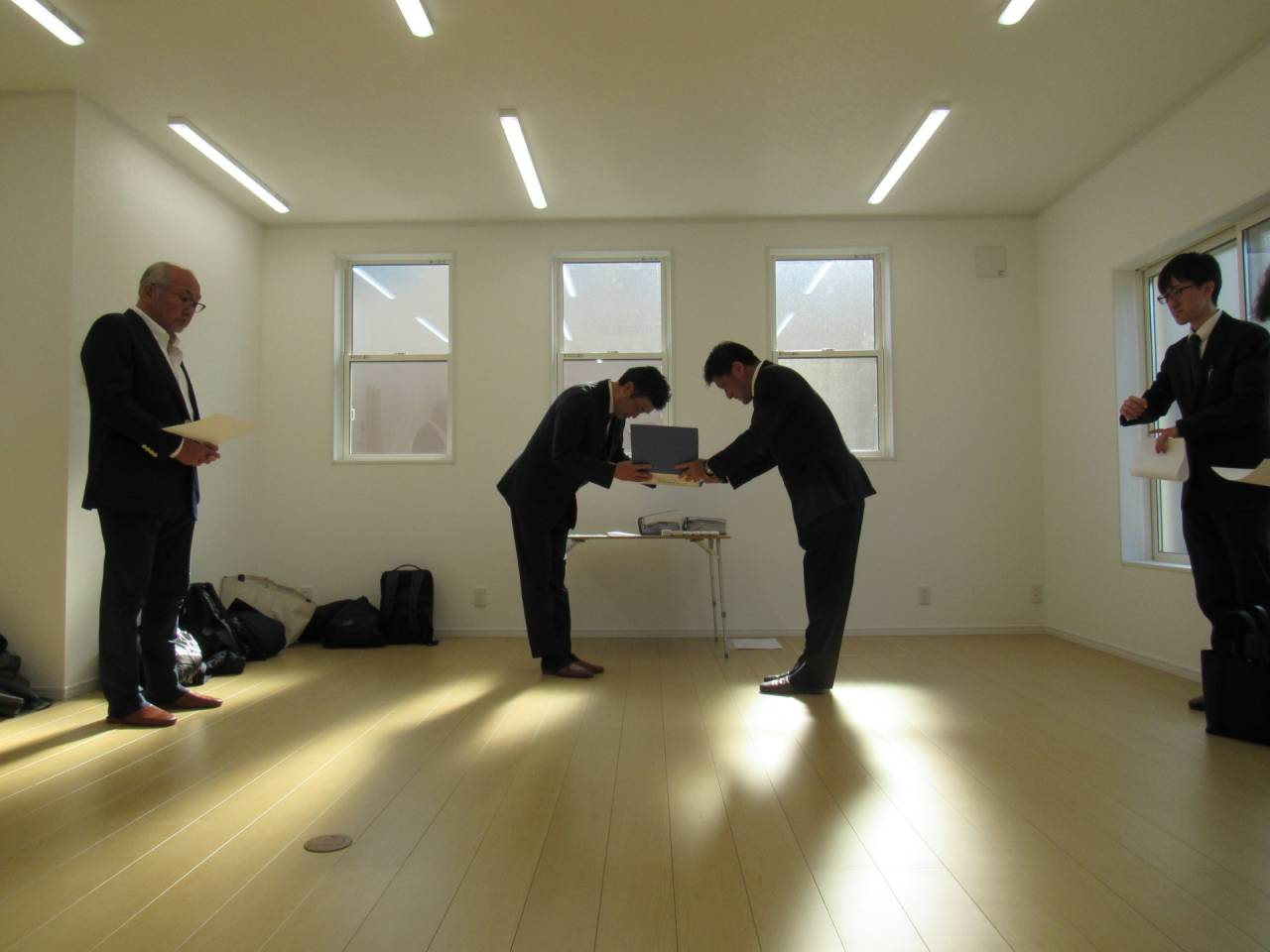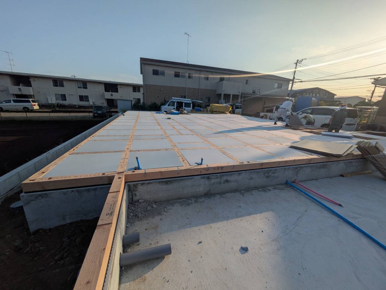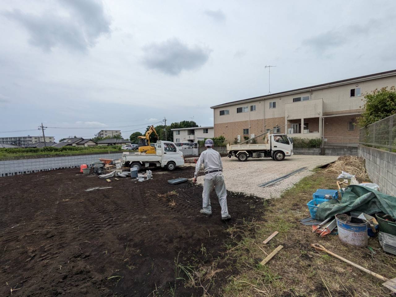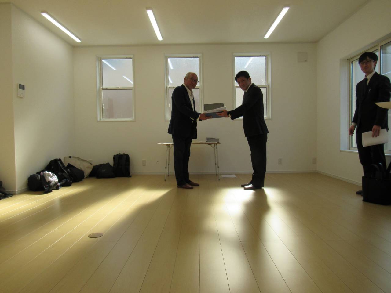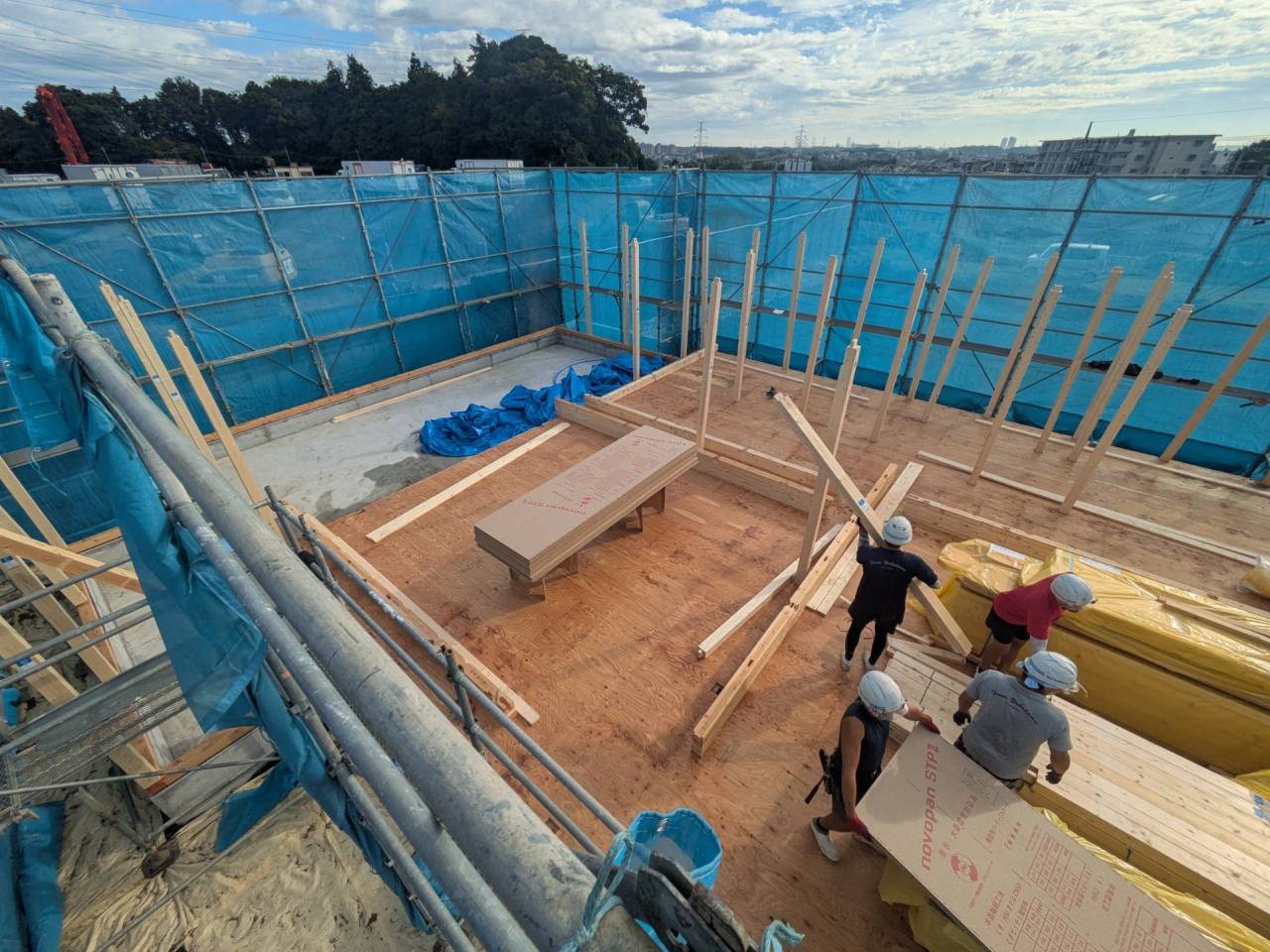 スマイルファクトリー新築工事 2026/01/30 竣工致しました。 外観をごらんいただきましょう。 内部もご覧ください。 お引渡しの式が執り行われました。 弊社からお施主様へお引渡しをさせて頂きました。 お施主様から運営法人様にお引渡して頂きました。 外構工事が終わればお引渡しです。 木工事が終わりました。 外壁工事もほぼ完了です。 外壁に防水シートを貼り終えました。 内部の断熱工事始まりました。 サッシが入り、外壁の下地が貼られました。 内部の構造をご覧ください。 屋根の垂木まで組み上がりました。 野地板が貼り終えました。 上棟式が行われました。 棟梁が先導して四方を清めました。 上棟しました。 内部の構造をご覧ください。 ルフィングシートが丁寧に貼られています。 野地板もしっかりと貼り終えました。 垂木がしっかりと貼られています。 上棟が始まりました。 床下の断熱と床の下地を貼って、いよいよ上棟です。 木工事が始まりました。 木工事が始まりました。 基礎工事が完了しました。 基礎工事が始まりました。 造成工事が始まりました。 境界のブロック工事が始まりました。 福祉施設・店舗建築