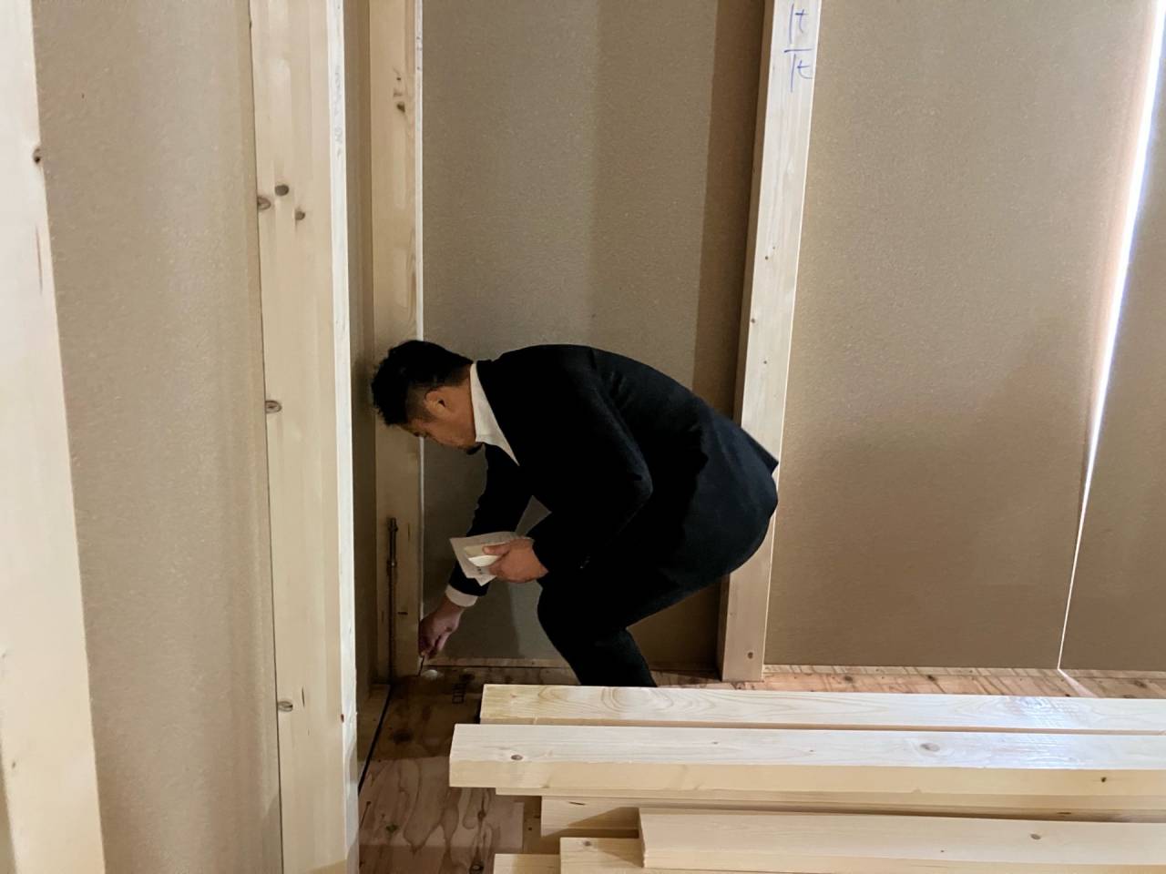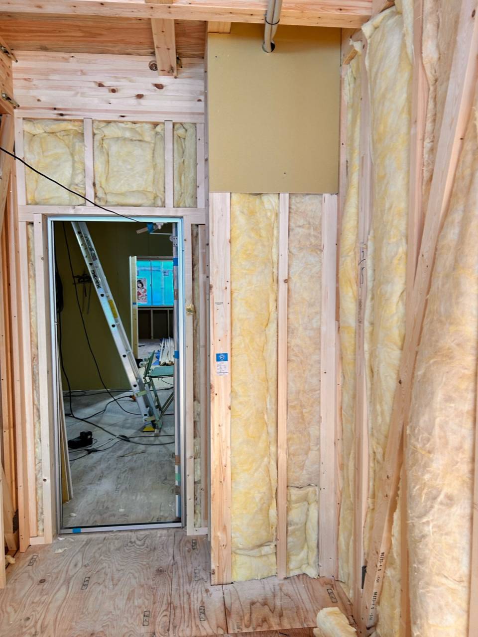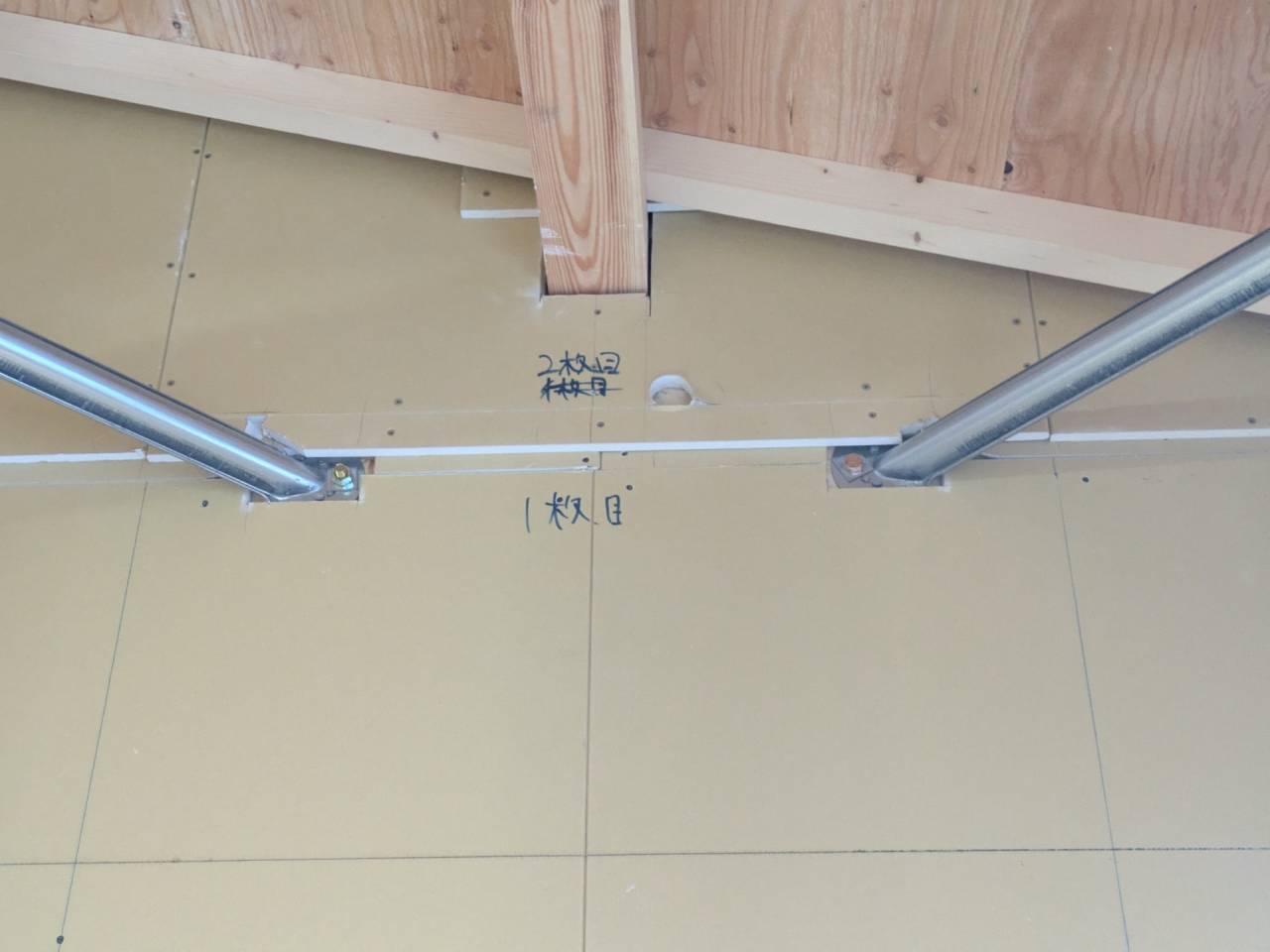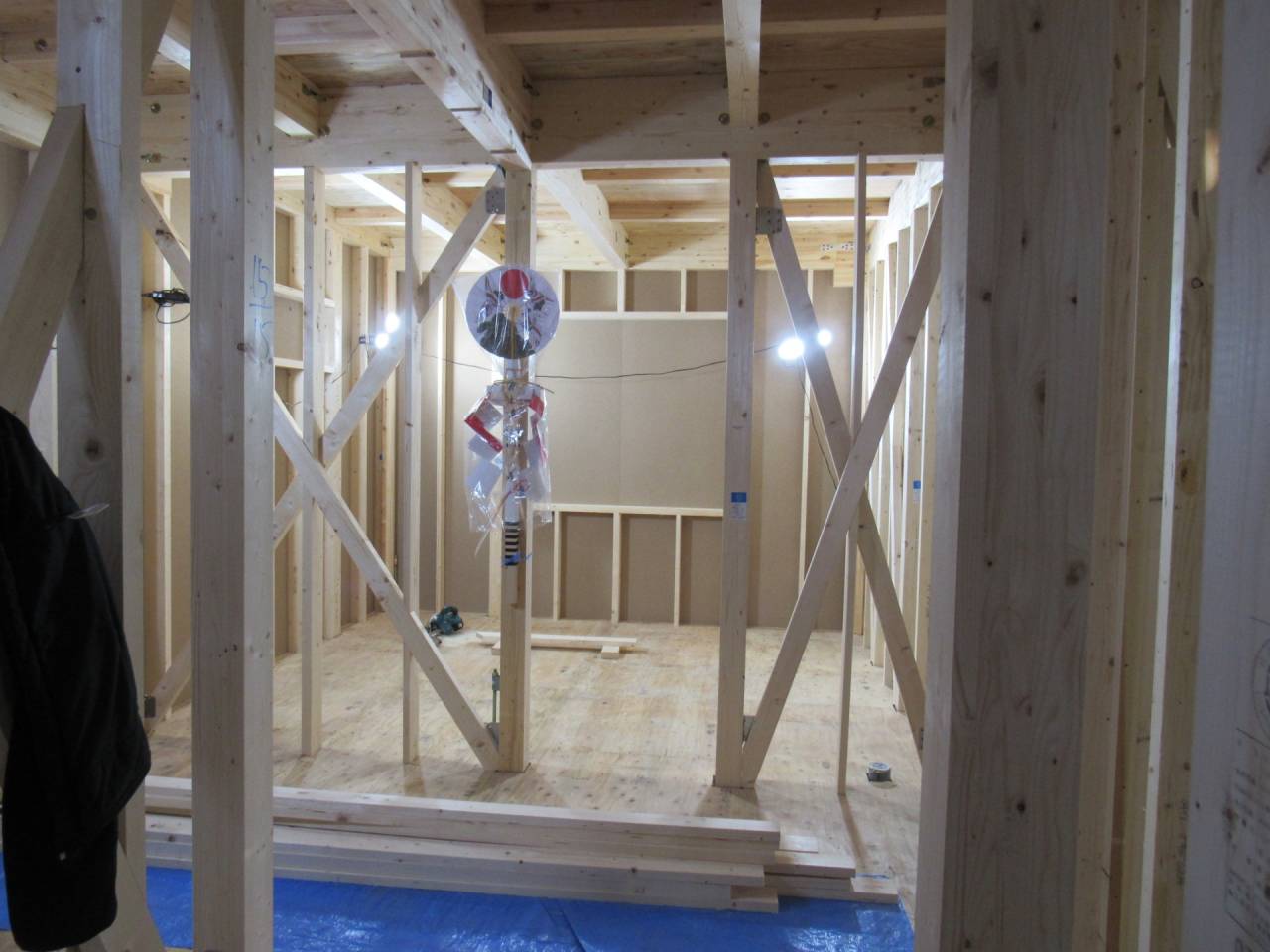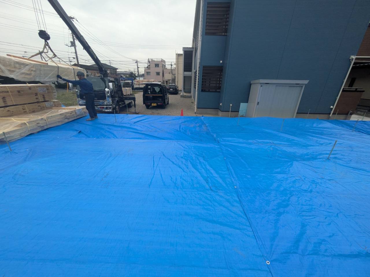 みなみ風15新築工事 2026/03/06 残念ですが、外構工事中で内部をお見せ出来ません。 次回をお楽しみに。 外壁の工事もほぼ終わりました。 木工事も大分進んでいます。 断熱工事が完了しました。 建物の全容が分かるようになりました。 安全第一に工事を進めています。 中央にある飾りは幣串(へいぐし)と言い、新築の棟上げの儀式で、家屋の守護と家内安全を願って屋根裏の最も高い部分(棟木)に取り付けられる魔除けの飾りです。 構造をご覧ください。金具による補強もしています。 屋根の防水工事が終わりました。 上棟式を行いました。 建物の4隅を清めました。 完成の無事を祈って乾杯をしました。 関係者がそろって記念撮影です。 上棟しました。 野地板を貼り終えました。 垂木も貼り終えました。 木工事が始まりました。 基礎工事が終了しました。 基礎工事が始まりました。 配筋工事が終了しました。 地鎮祭が行われました。 神主様により四方を清めました。 鍬入れの儀です。 関係者全員がお祓いをして頂きました。 お神酒でお清めをしました。 地鎮祭も無事終わり、記念撮影です。 福祉施設・店舗建築