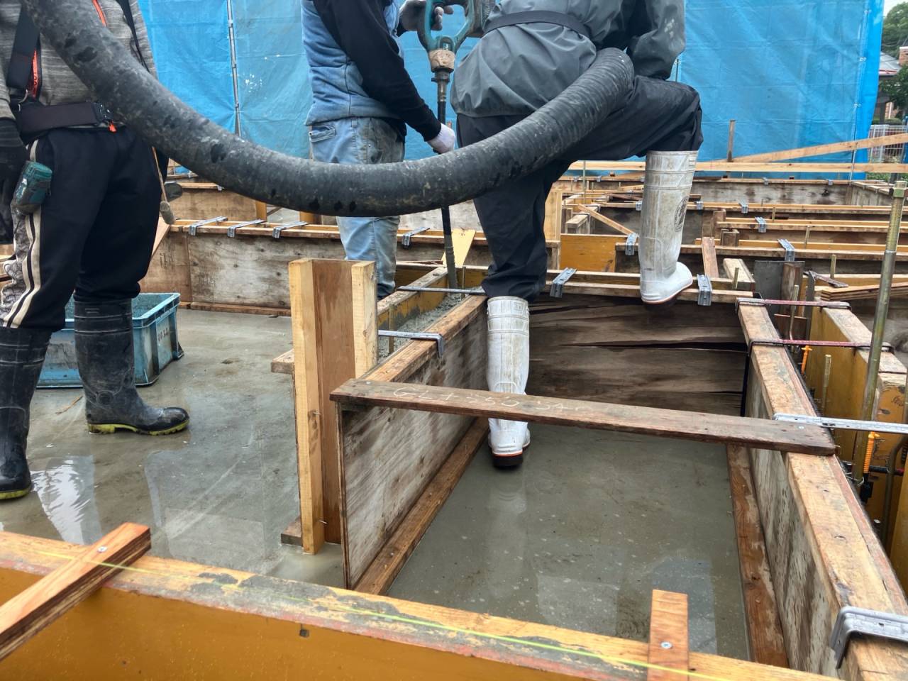 中田西分譲No.3新築住宅 2026/02/05 屋根の工事が終わりました。 断熱材工事も終わりました。 構造をご覧ください。 基礎工事が完了しました。 コンクリート打設中です。 基礎のコンクリートの打設が終わりました。 基礎工事が始まりました。 土地改良工事が始まりました。 地質調査を行いました。 地鎮祭が行われました。 新築住宅