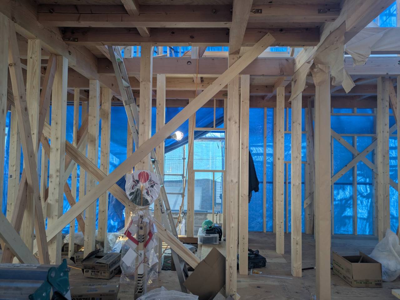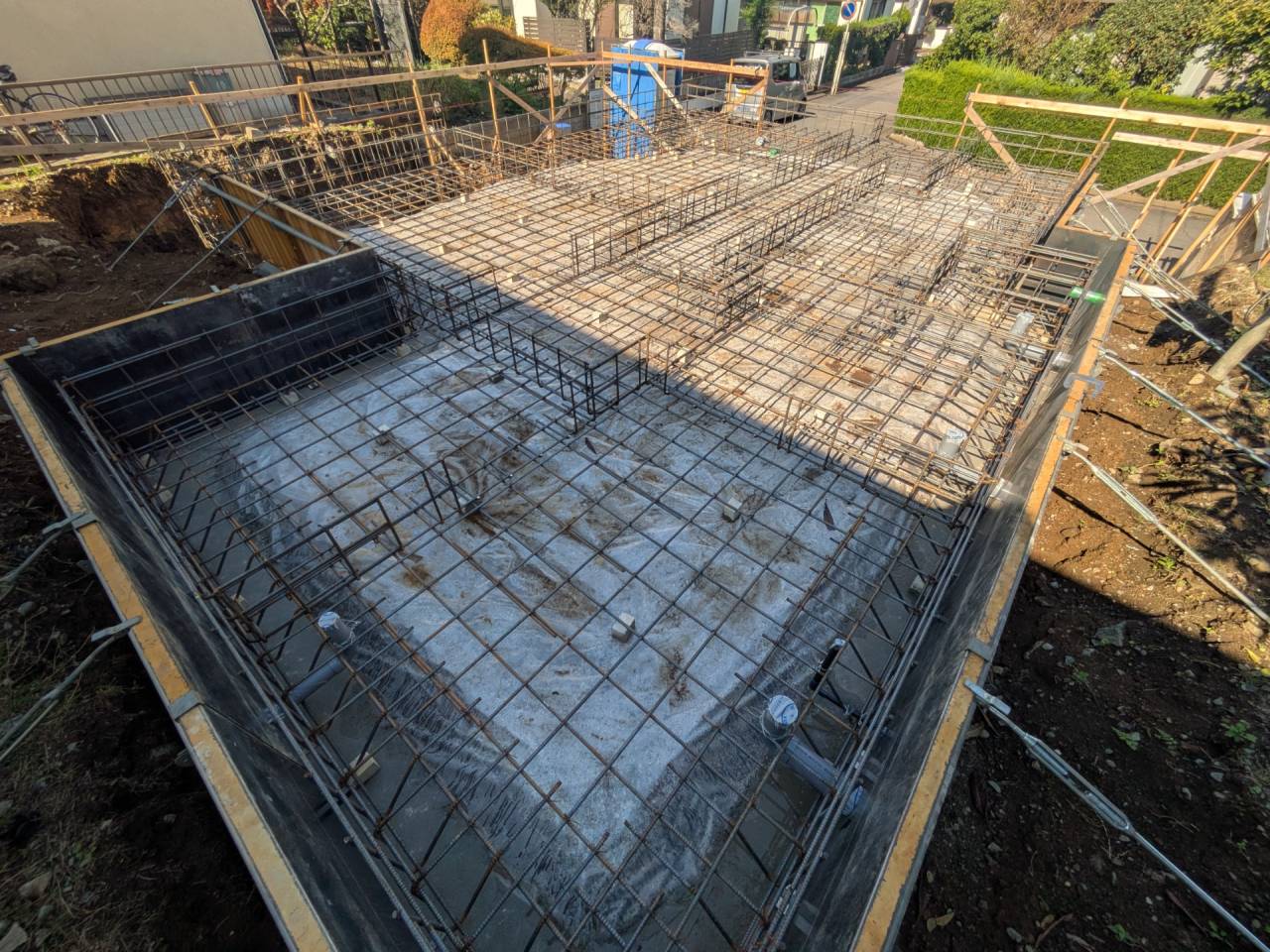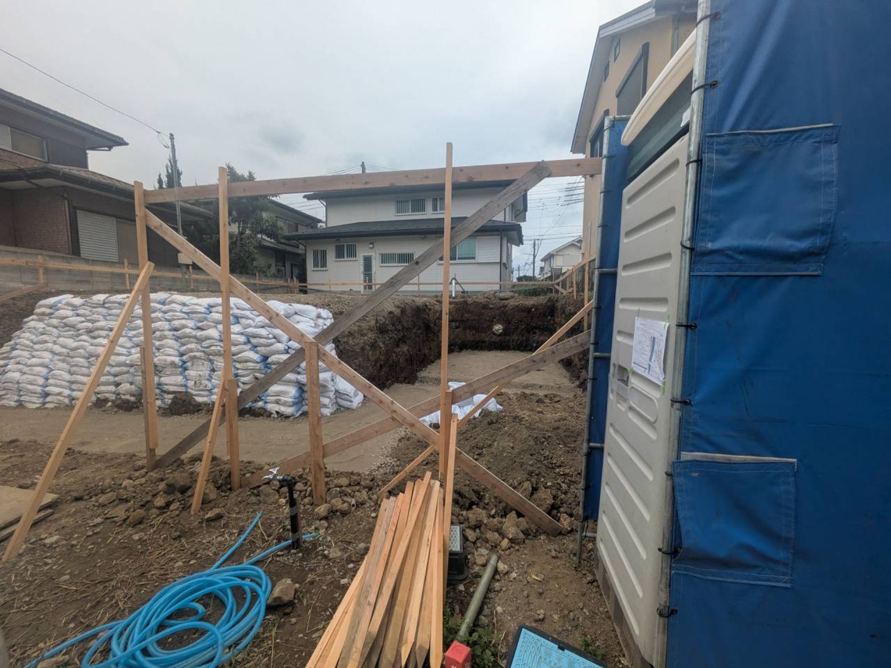 I様邸新築工事 2026/01/30 外壁の防水も完了です。 上棟しました。 屋根も無事完成しました。 仮囲いが出来ました。 材料が搬入されました。 木工事が始まりました。 床下配管が整いました。 基礎工事が完了しました。 基礎改良工事を行っています。 かなり大規模な工事です。 新築住宅