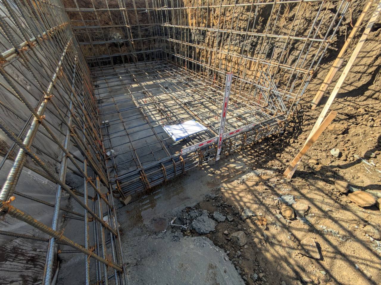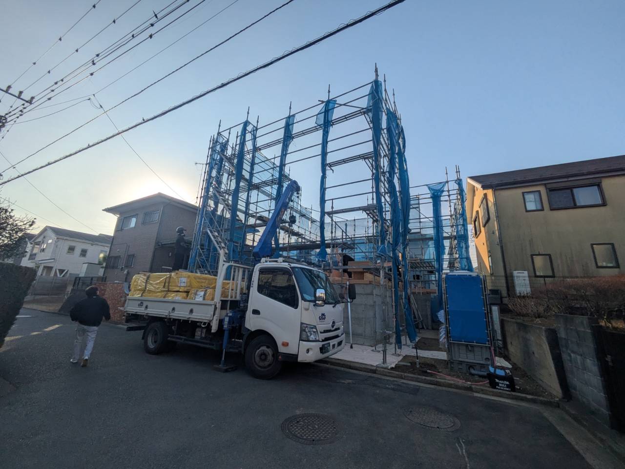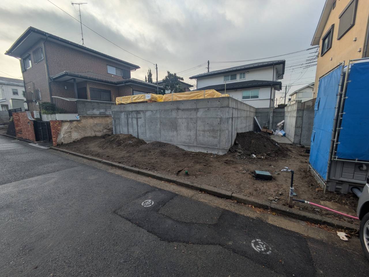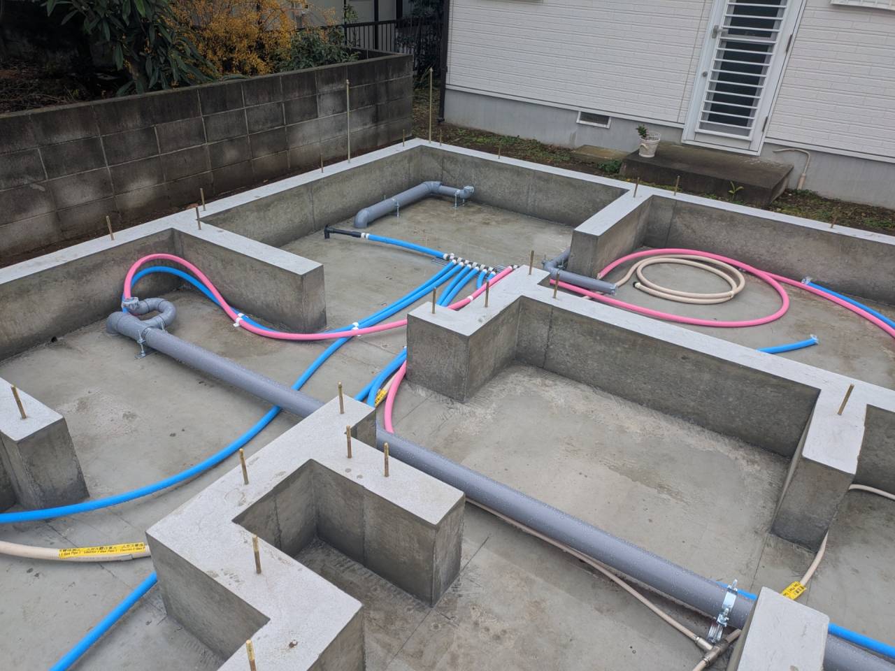 I様邸新築工事 2026/01/30 外壁の防水も完了です。 上棟しました。 屋根も無事完成しました。 仮囲いが出来ました。 材料が搬入されました。 木工事が始まりました。 床下配管が整いました。 基礎工事が完了しました。 基礎改良工事を行っています。 かなり大規模な工事です。 新築住宅
