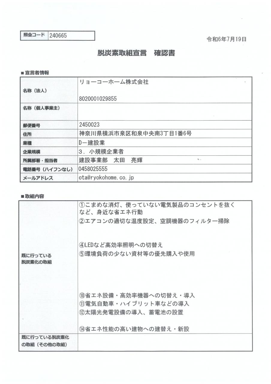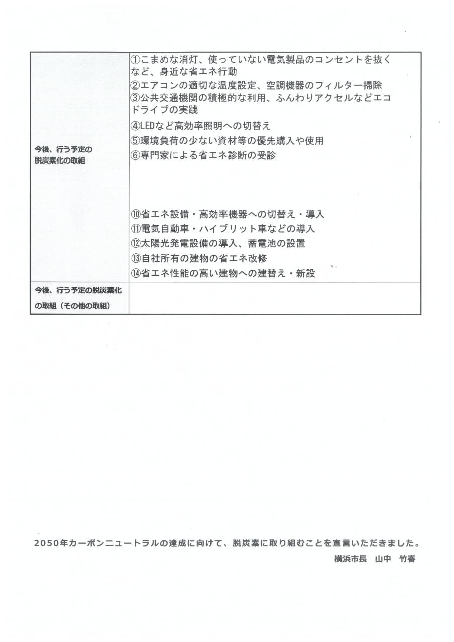 横浜市 脱炭素取組宣言をしました 2024/09/13 先ずはこまめな消灯等、身近な省エネなどに取り組んでいます。 今後、LED照明への転換、エコドライブの実践等を心がけて行きます。 トピックス VOICE&OPINION