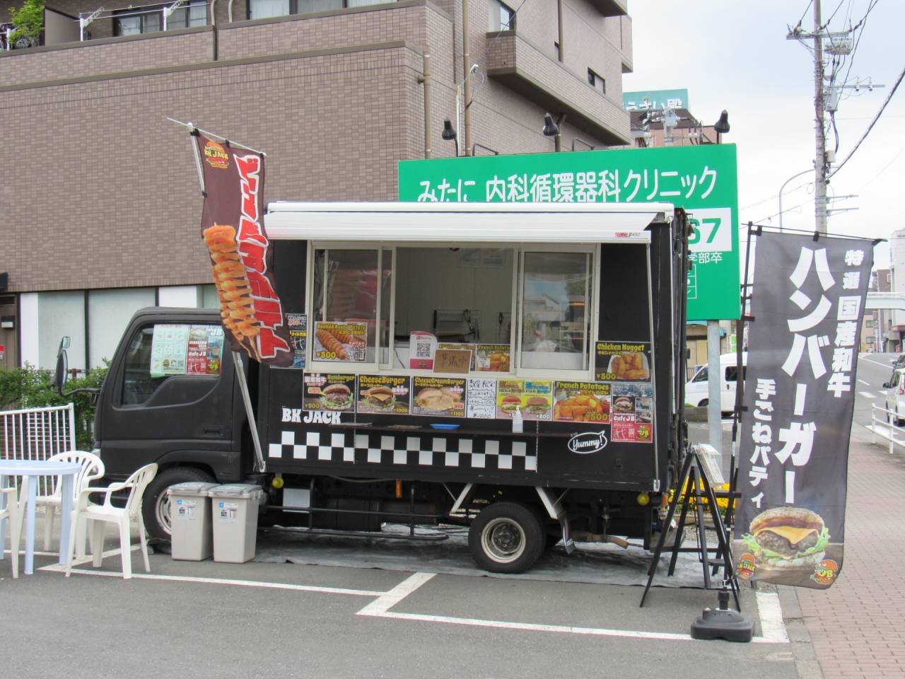 25日(金)にもキッチンカーがリョコーホームにやってくる 2025/04/04 今日は黒いキッチンカーがやってきました。 黒毛和牛のハンバーガーのようです。 4/25(金)キッチンカーがリョコーホームに! 11:00~14:00 25日のお昼にハンバーガーは如何ですか? トピックス イベント情報 I LOVE 泉区